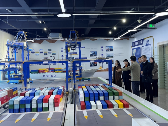 青岛港湾职业技术公司港口公司主任吴广河介绍了港口公司的发展特色;佟黎明副主任介绍了1+X证书、团队培养基本情况;唐晓辉助理介绍了专业建设、实习实训、校企合作等方面的发展;孙治国助理和教研室主任孙晓莉带领公司老师参观了港口公司的实训室,如青岛港远程生产实镜实训室、集装箱码头操作系统实训室、港口立体动态沙盘,门机、场桥模拟器实训区等。